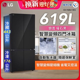 LG 智慧變頻四門冰箱|一級省電 / 曜石黑鏡面 / 619公升(GV-NB61BG)
