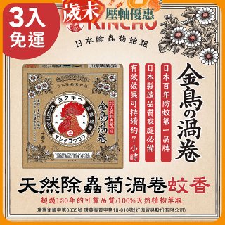 免運!!【日本金鳥】天然除蟲菊渦卷蚊香3入