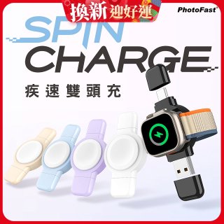 【PhotoFast】SPIN Charge 疾速雙頭充 applewatch專用手錶磁吸無線充電器 (USB及Type-C雙頭)