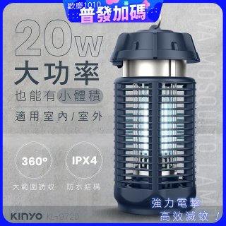 【KINYO】 IPX4防水 電擊式捕蚊燈20W (KL-9720)
