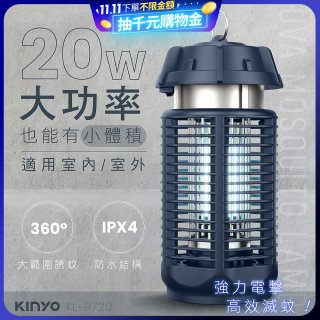 【KINYO】 IPX4防水 電擊式捕蚊燈20W (KL-9720)