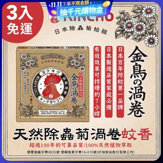 免運!!【日本金鳥】天然除蟲菊渦卷蚊香3入