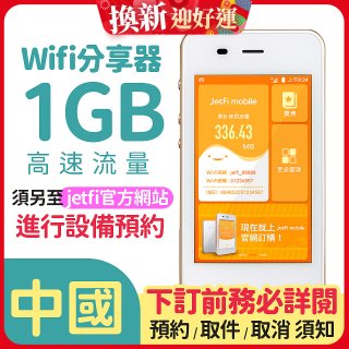 jetfi 中國Wifi分享器 1GB高速流量