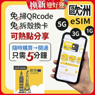 jetfi 歐洲聯遊eSIM 1GB/3GB/5GB