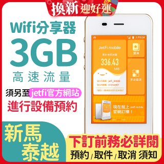 jetfi 新馬泰越Wifi分享器 3GB高速流量