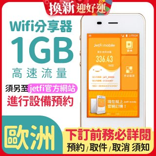 jetfi 歐洲Wifi分享器 1GB高速流量