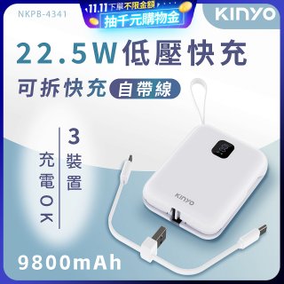 【KINYO】可拆式自帶線快充行動電源 (NKPB-4341W)