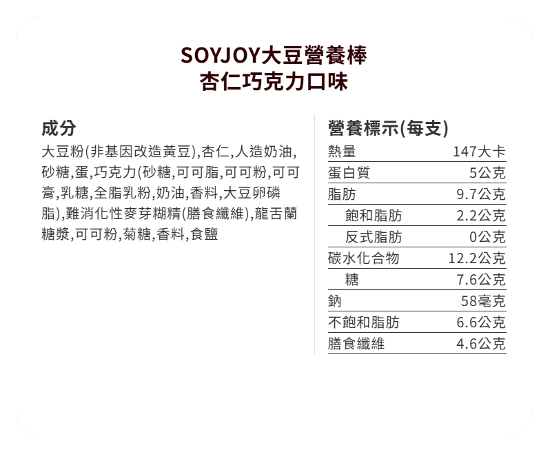 SOYJOY 大豆營養棒 杏仁 巧克力 風味 大豆 營養