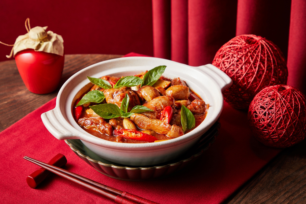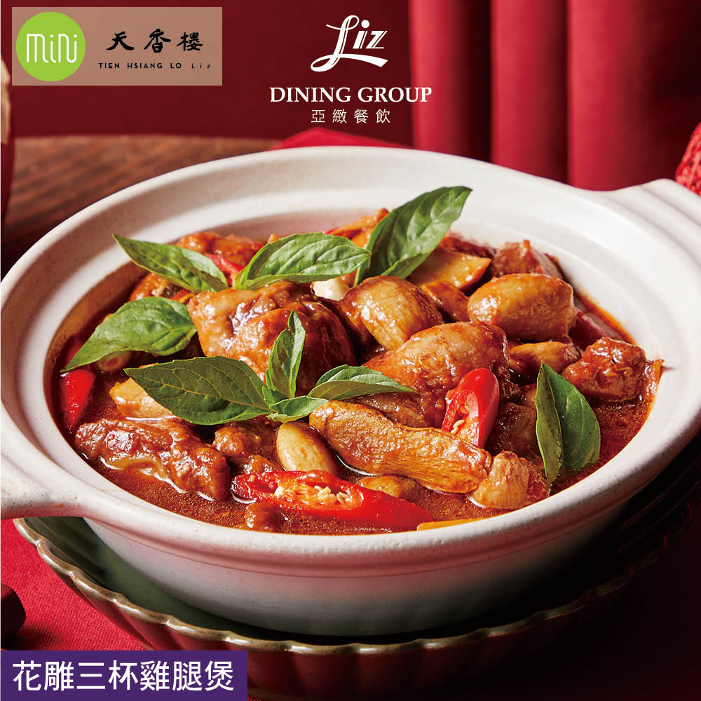 麻油香鞭雞腿,加入糟滷入味,些許微辣、九層塔香氣,迥異傳統風味。