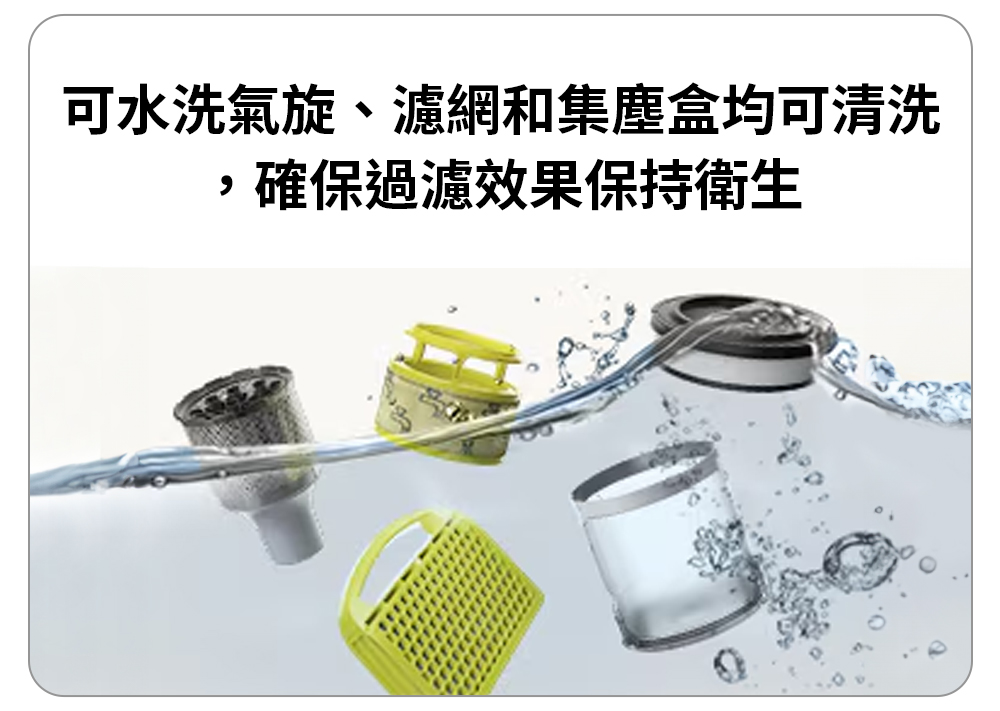 -可更換集塵袋;對於集塵袋內積聚的灰塵表面所滋生的細菌,其抑制效果以及集塵袋的建議更換時間,可能會因應實際環境條件而異。