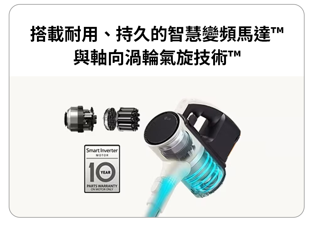 根據 LG 的內部測試結果,未附帶任何電動吸頭的運行時間,單顆電池低電量模式最長可達 60 分鐘;正常模式最長可達30分鐘;強勁模式最長可達 10 分鐘;強力清潔模式最長可達 6 分鐘。如使用電動吸頭,則單顆電池運行時間,低電量模式最長可達 40分鐘;正常模式最長可達20分鐘;強勁模式最長可達 13 分鐘;強力清潔模式最長可達 8分鐘。