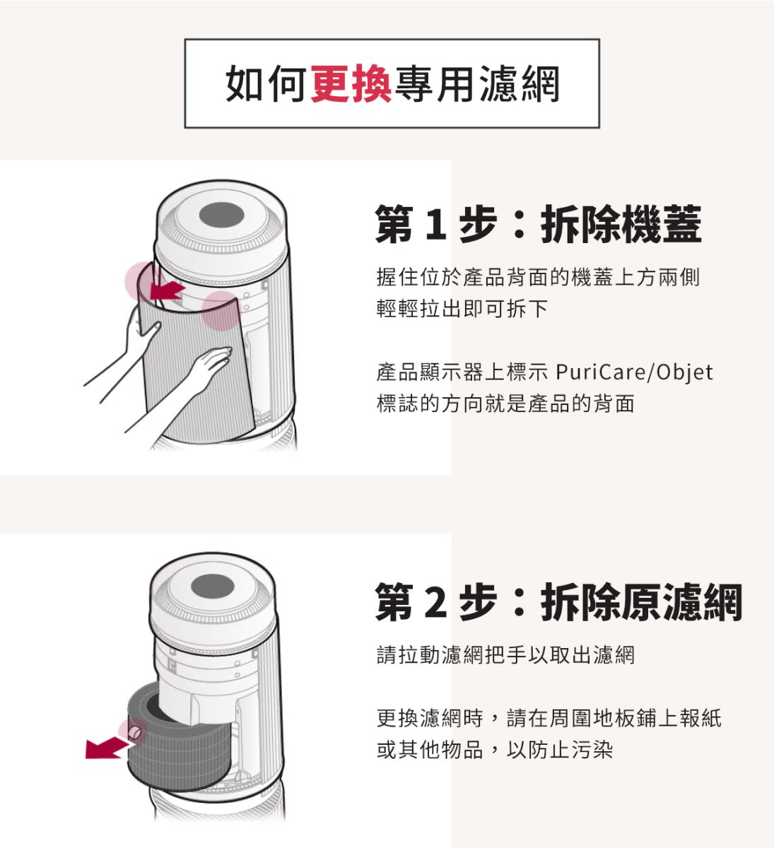 • 使用前請務必先拆下原附著在現有濾網上的毛髮濾網。