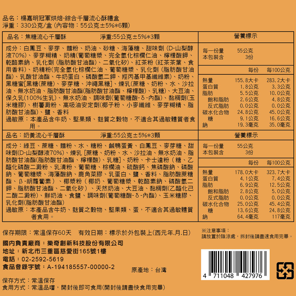 結合了奶黃流心與焦糖太妃流心兩種經典口味,千層外皮、內餡滑順,讓您一咬之下即可感受到柔軟的流心內餡,享受到濃郁奶香與醇厚焦糖的香氣,風味獨特口感層次豐富,讓人流連忘返。