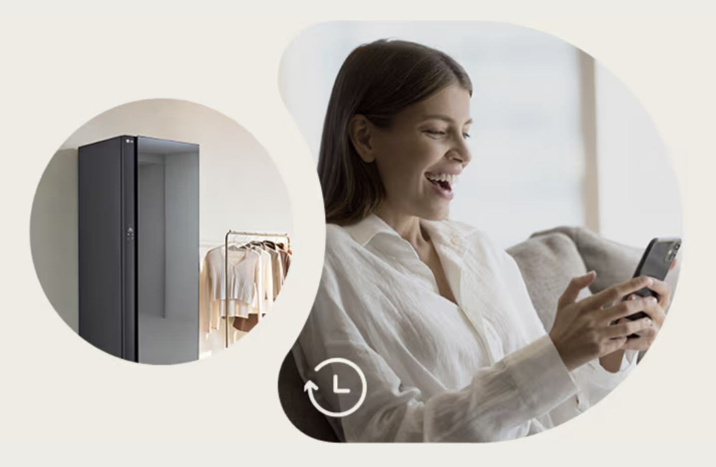 若衣服從衣架上掉下來,可透過 LCD螢幕或 ThinQ 應用程式自動收到通知提醒。