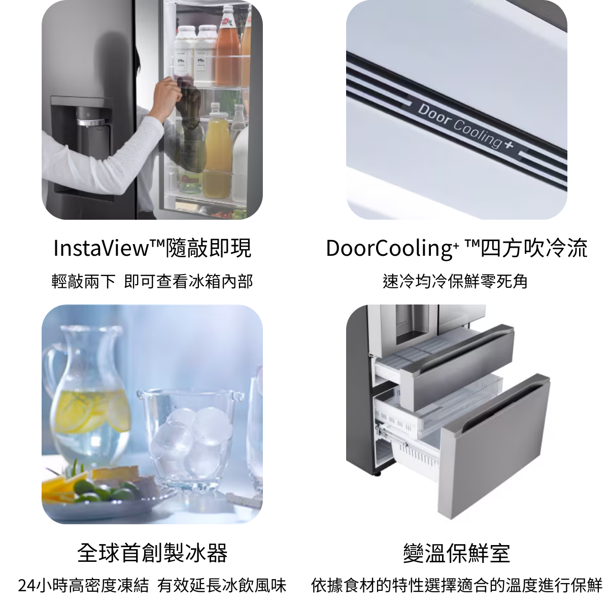 *上述圖片與影片僅供說明之用,可能與實際產品不同 1)DoorCooling⁺ ™