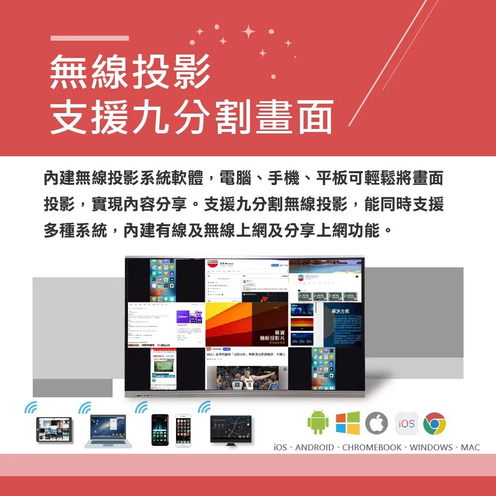 圖/486×PERSONA 電子白板實可9分割無線投影、4分割同時書寫互動