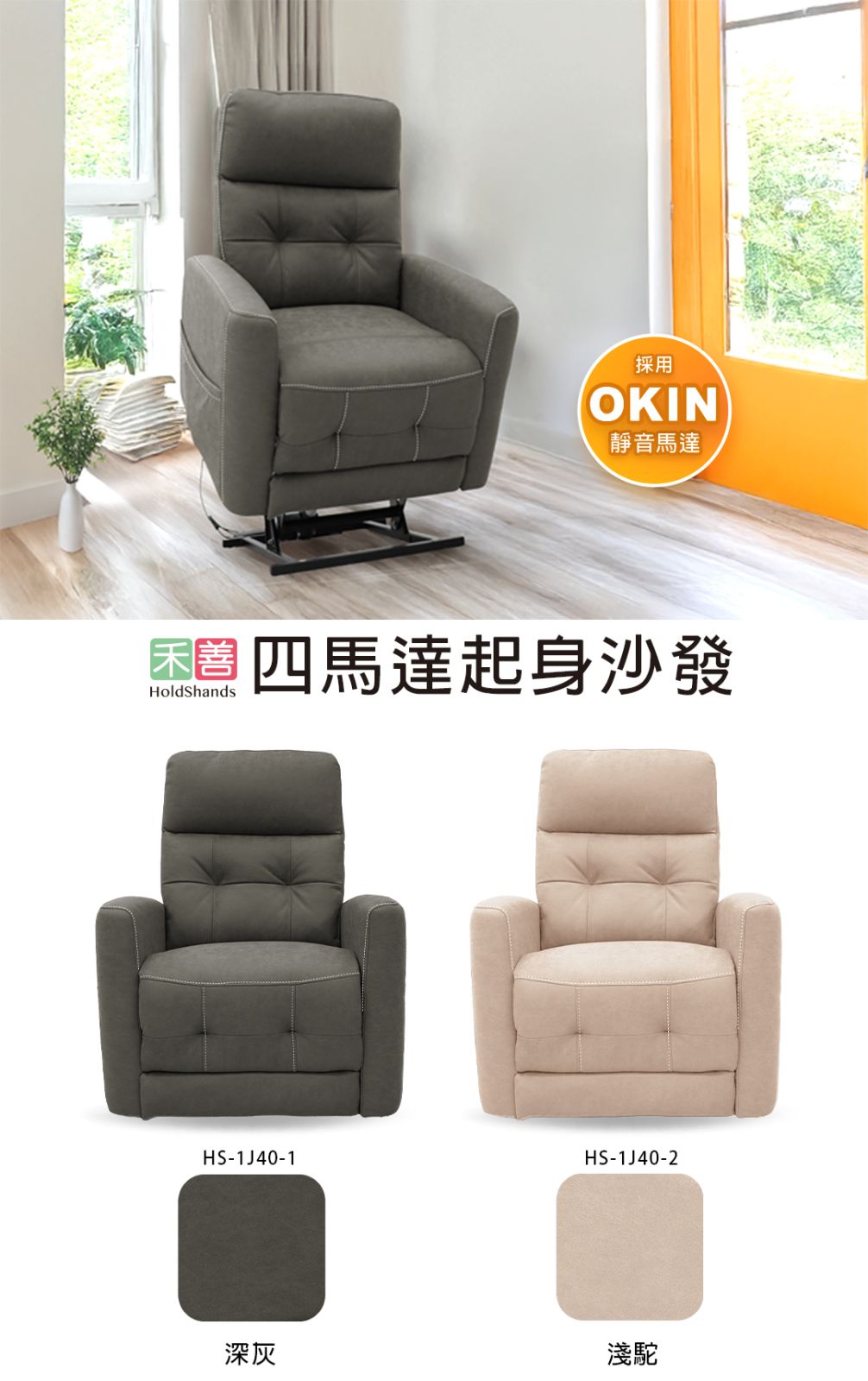 禾善四馬達起身沙發,結合德國工藝標準與台灣實用需求,