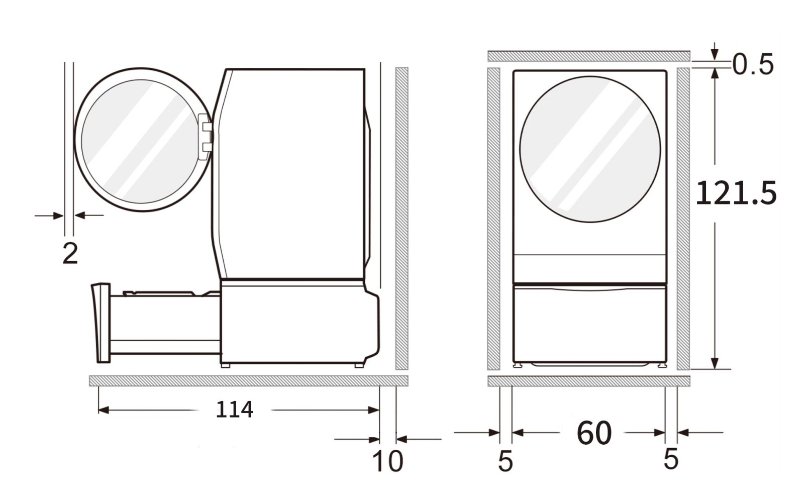 ● 滾筒開門方向為左開無法更動,上下層無法安裝於不同的地方。