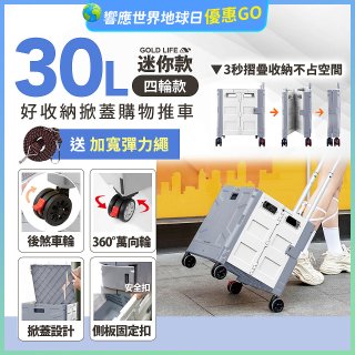 《GOLD LIFE》萬能迷你款掀蓋式購物推車 30L