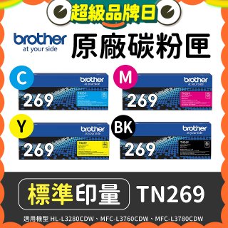 brother 兄弟牌 TN269 (C/M/Y/K) 原廠碳粉匣 (適用L3280CDW、L3760CDW、L3780CDW)