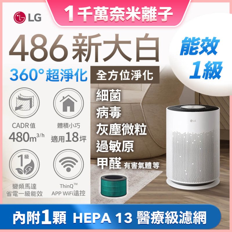 ▍3/6-5/31限時加碼送 LG 新大白空氣清淨機