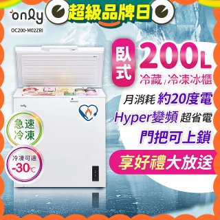 (2025/9/10因改款暫下架)only 200L 變頻臥式冷藏冷凍兩用冰櫃 OC200-M02ZRI