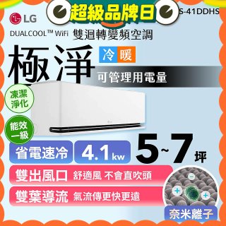 LG DUALCOOL™ WiFi 雙迴轉變頻空調-極淨系列_4.1kw_建議適用坪數約5-7坪 (LS-41DDHS)